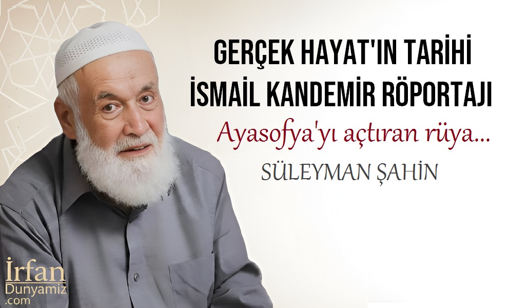 Bunun üzerine Demirel “Perşembe günü ben İnönü ile bir görüşeyim” demiş. Görüşmeyi yaptıktan sonra tekrar gelen heyete “Bu mümkün değil, olmayacak bir şey” deyince bizim imam; “Bu iş olsun, benim daireyi sana vereceğim” diyerek söz vermiş. Burada mühim olan şu: Ayasofya o kadar kıymetli ki o adamların gözünde, evinden barkından bile anında vazgeçebiliyor. Böyle bir aşktır bu. Osman Yüksel Serdengeçti’yi bilirsiniz. Bu uğurda hapis yatmış biridir. Dolayısıyla bu iş bizim nesil açısından bir Kızılelma hüviyetinde.