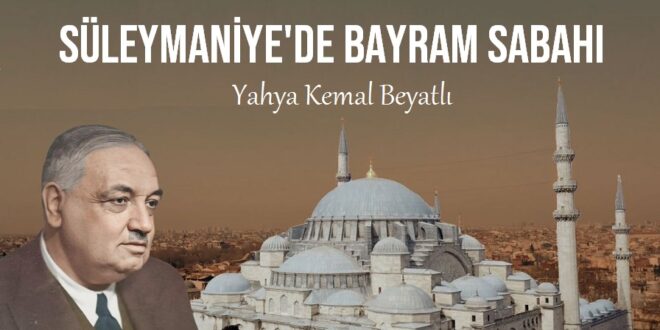 Artarak gönlümün aydınlığı her saniyedeBir mehâbetli sabah oldu Süleymâniye`deKendi gök kubbemiz altında bu bayram saati,Dokuz asrında bütün halkı, bütün memleketiYer yer aksettiriyor mavileşen manzaradan,Kalkıyor tozlu zaman perdesi her an aradan.Gecenin bitmeye yüz tuttuğu andan beridir,Duyulan gökte kanat, yerde ayak sesleridir.Bir geliş var!.. Ne mübârek, ne garîb âlem bu!..Hava boydan boya …