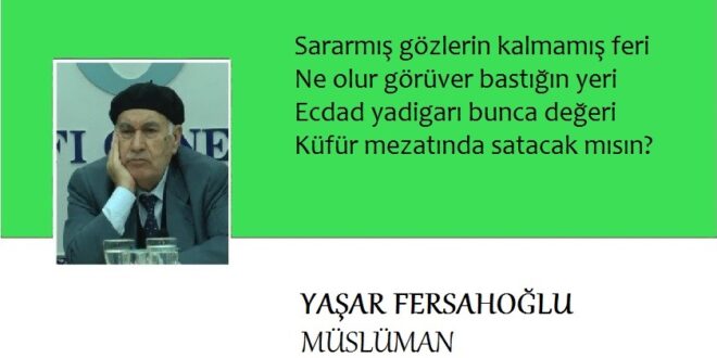 Günbegün devrolup bozuldu dünya,Dahi yaşanacak zaman mı kaldı?Selboldu milletten edep ü haya,Kadında, erkekte erkan mı kaldı? Cahiller divane, kamiller sarhoş,Bülbül kafesinde ötüyor baykuş,Bağlar gazellendi, meyvalar mayhoş,Alıp koklaşacak reyhan mı kaldı? Şehristanda alış veriş tüccarı,Haramı doldurdu serden içeri,Köylüde kalmadı rehim eseri,Açıp sırlaşacak ihvan mı kaldı? Bu millet atıldı hep haramkara,Nefsine aldandı …